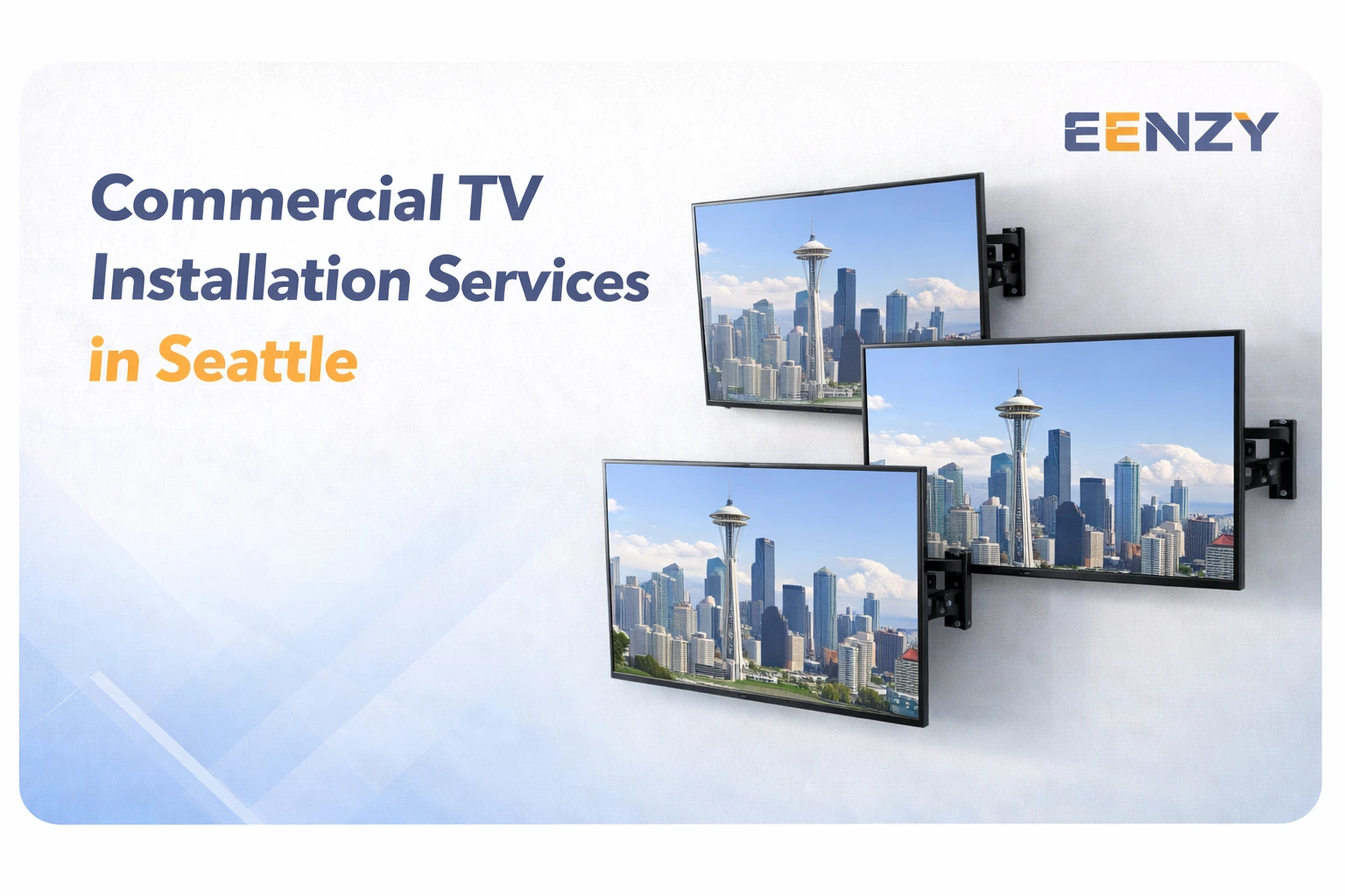 At Eenzy, we provide professional commercial TV installation services in Seattle and surrounding areas for offices, businesses, retail stores, and commercial spaces. We understand that installing TVs in a business environment requires precision, planning, and a clean, professional finish.